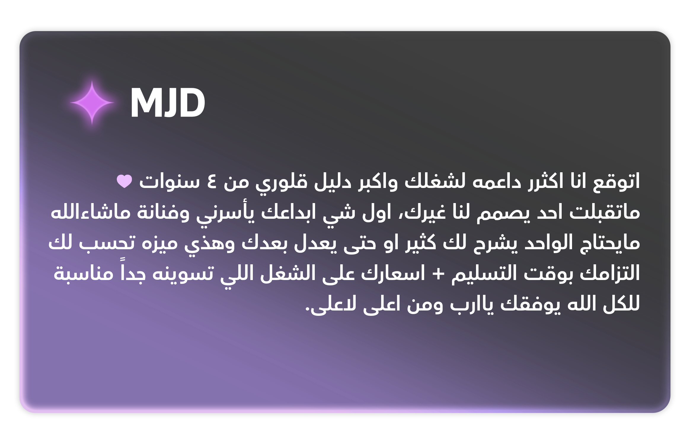 الوقت يعتمد على تعقيد المشروع. يتم تحديد مدة تقديرية لكل طلب عند الاتفاق.